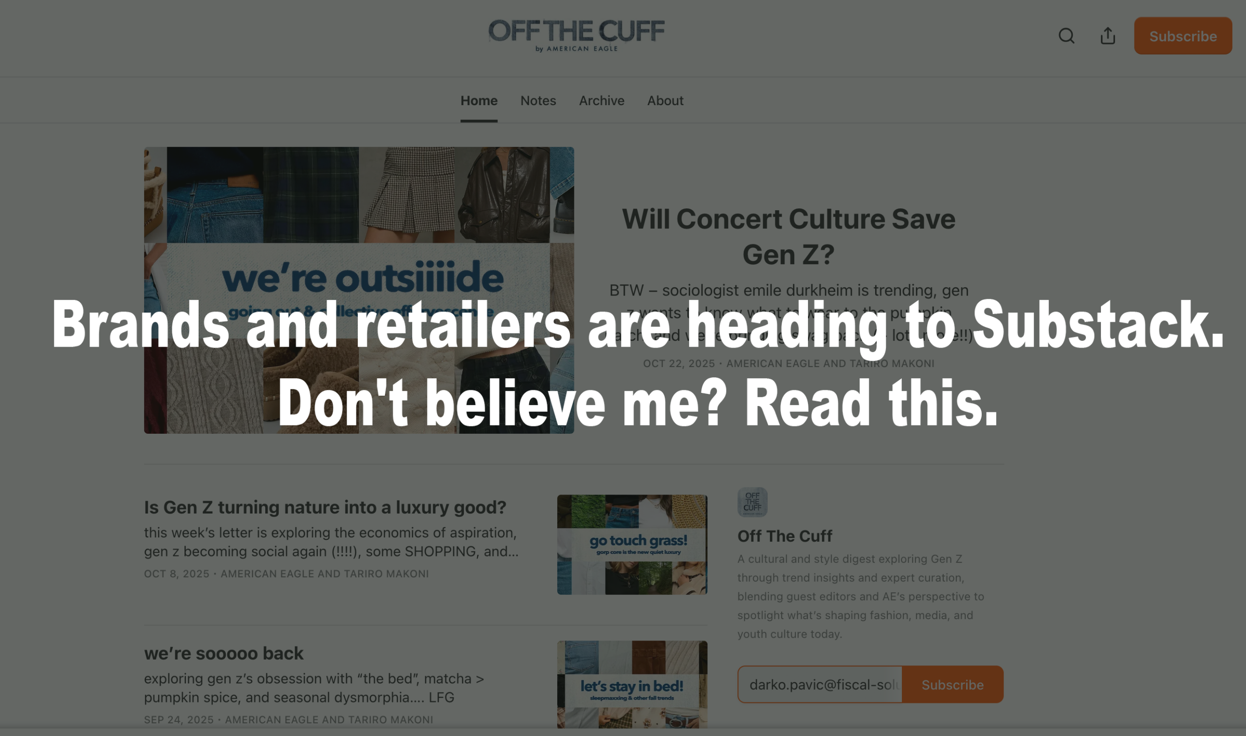 But here’s the exciting part: 2025 wasn’t just my awakening. It was the year retailers and brands realized Substack’s power for direct-to-consumer (DTC) magic.