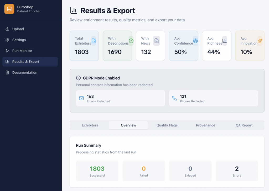 I wanted to learn what “AI-ready data” really means in practice, so I built an enrichment pipeline from scratch and stress‑tested it on the EuroShop 2026 exhibitor list. Here’s what broke, what I changed, and what I learned, plus a free dataset you can use for search, rankings, planning, and chatbots.
